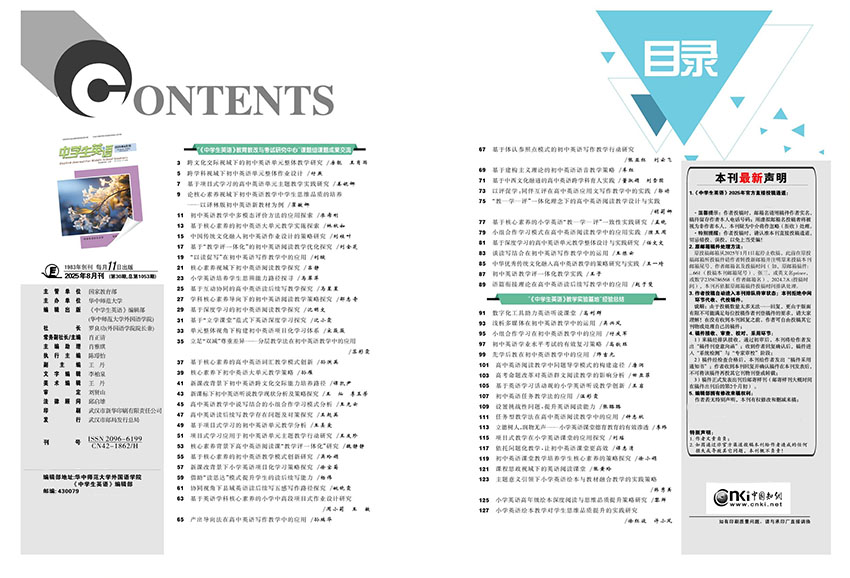 《中學(xué)生英語》雜志自創(chuàng)刊以來,始終以高品位、高質(zhì)量的辦刊標(biāo)準(zhǔn),打造貼合師生需求的優(yōu)質(zhì)內(nèi)容,成為英語教育領(lǐng)域的標(biāo)桿刊物。其內(nèi)容緊扣 “推進(jìn)教育教學(xué)改革,服務(wù)基礎(chǔ)教育質(zhì)量提升” 的辦刊理念,從教師教學(xué)與學(xué)生學(xué)習(xí)雙視角出發(fā),構(gòu)建起覆蓋英語教育全流程的內(nèi)容體系。